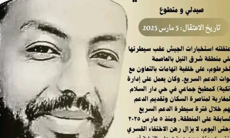 The “Emergency Lawyers” human rights group announced that (400 days) have passed since the disappearance of Dr. Tariq Ahmed Ali, who was arrested by the Military Intelligence on (March 5th, 2025) on charges of collaborating with the Rapid Support Forces (RSF), after the Sudanese Armed Forces (SAF) assumed control of “ShargAlneel” or the area East of the Nile in Khartoum.